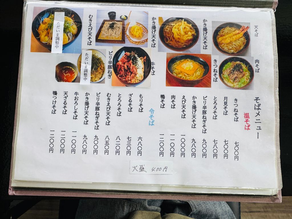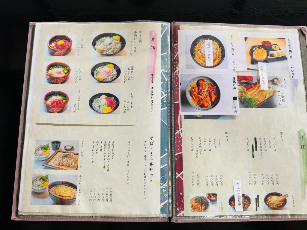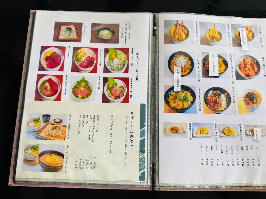 そばを中心に、シラスをはじめとした海鮮丼、天丼などがあります。