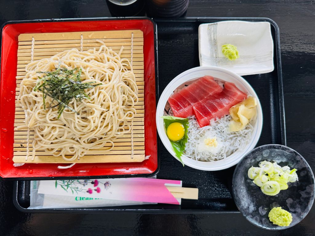 絵に見入っていると、『そば・ミニ丼(しらすまぐろ)セット』が到着。
