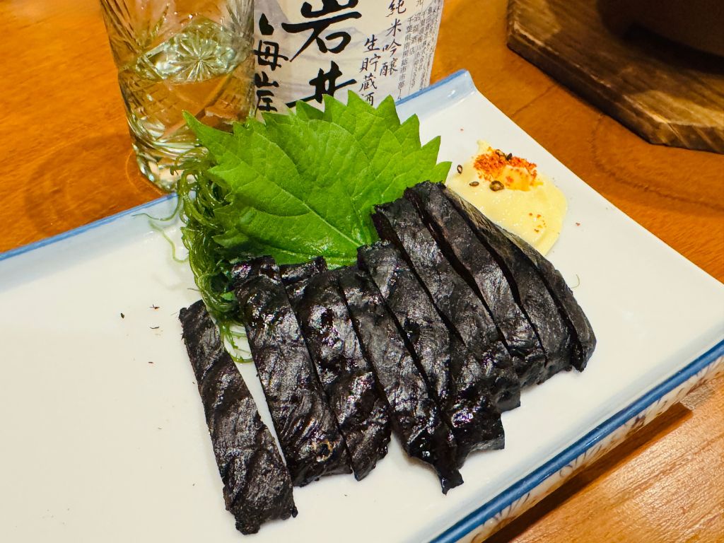 食感はエイヒレに近い感じで、味はくじら独特の臭みもなく、割と塩っ気の強い酒がすすむつまみです。