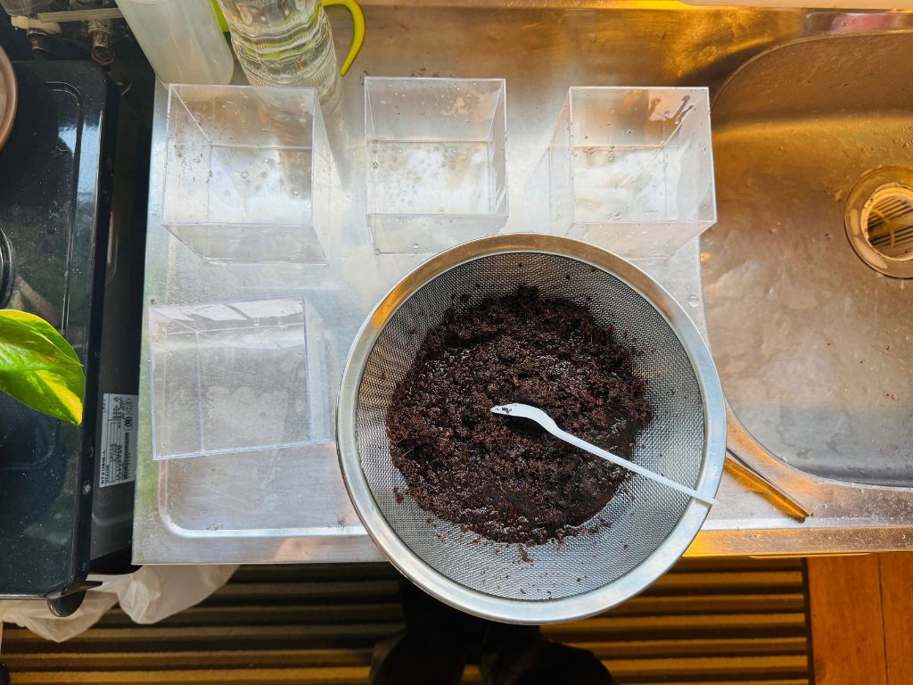 茶こしに残った胞子嚢やゴミ。