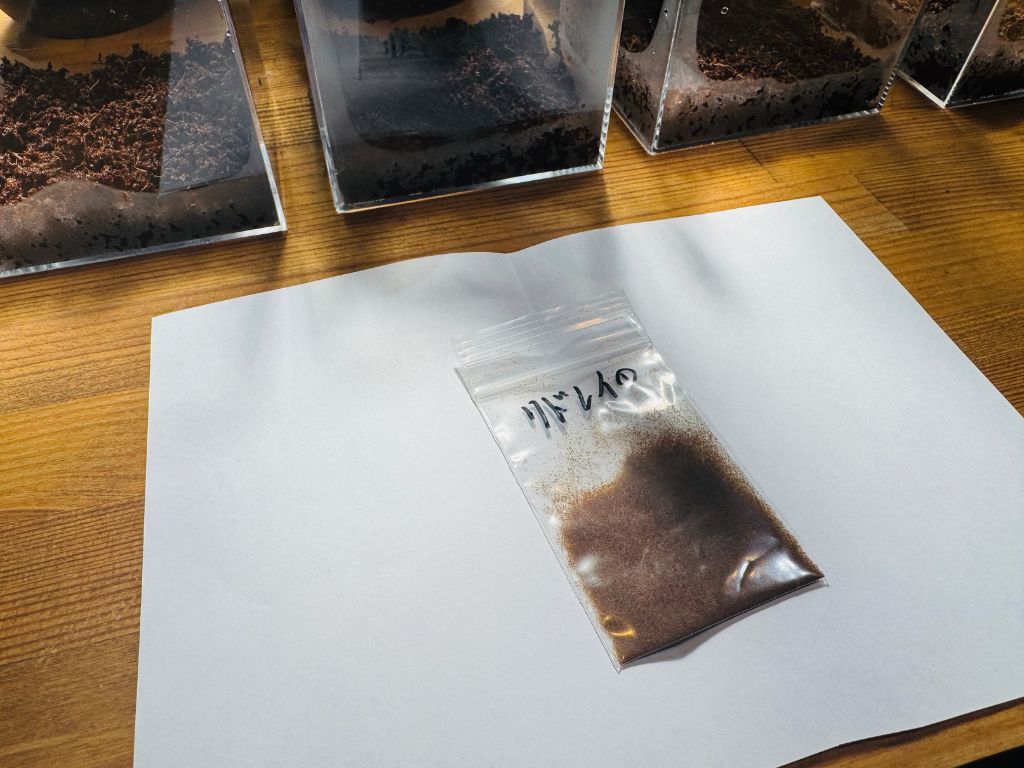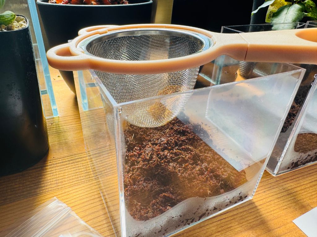 胞子だけを取り出したら、用土の入ったケースに蒔いていきます。
