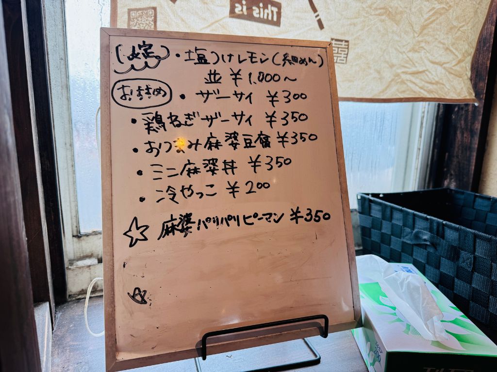 注文した後に気づいたんですが、『塩つけレモン(細めん)』はちょっと食べてみたかったかも。