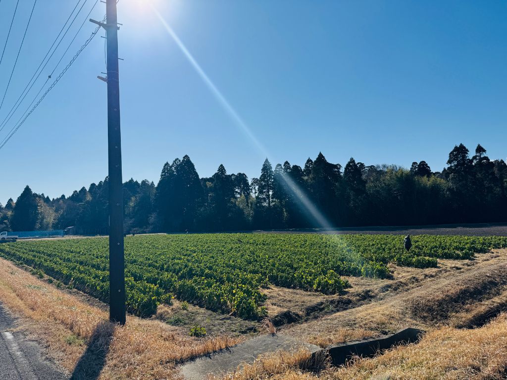 ナバナ摘み体験のこの日も快晴で、コートがいらないくらいでした。
