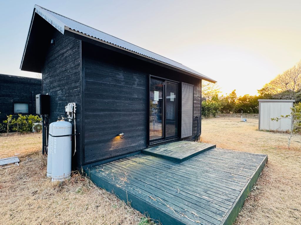というわけで、実際には購入タイプの小屋なんですが、こちらシラハマ校舎さんでは無印良品の小屋に宿泊することができるというわけです。