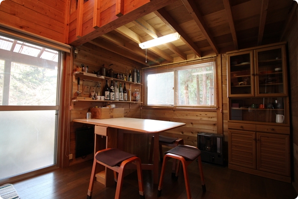 壁面の酒棚は、山小屋を購入して、速攻DIYで作成しました。(お酒大好き)